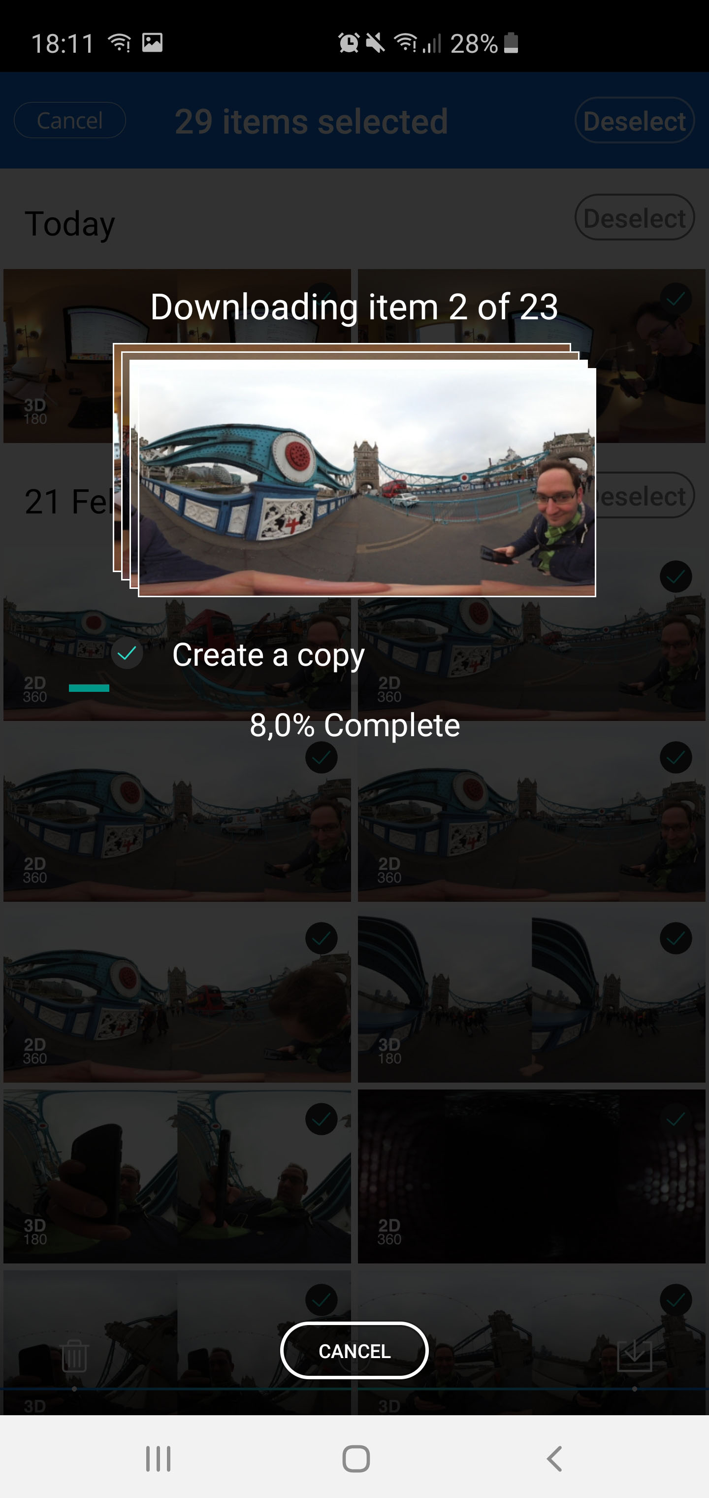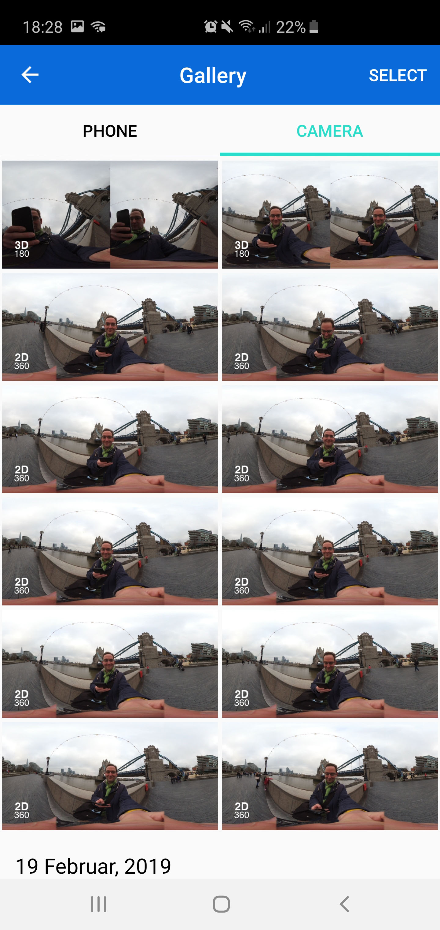 Praktisch: Das Stitching erledigt die Vuze XR im Test von selbst. Sie fügt die Einzelaufnahmen beider Objektive also automatisch zu einer Datei zusammen. Daher können wir die Bilder sofort in der Smartphone-App betrachten, wahlweise auch mit geteiltem Bildschirm in der Ansicht für Virtual-Reality-Brillen.
