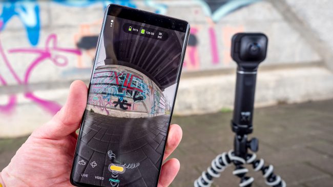 Anders als bei der Vuze VR zum Start liefert die App der Vuze XR direkt eine Live-Vorschau in 360 Grad bzw. 180 Grad. Das erleichtert die Perspektivkontrolle vor der Foto-Aufnahme und während der Video-Aufnahme deutlich. Ausnahme: Ist die Standard-Auflösung von 5,7K aktiv, verweigert die App eine Live-Vorschau. Wenn wir sie auf 4K herunterschrauben, funktioniert sie aber.