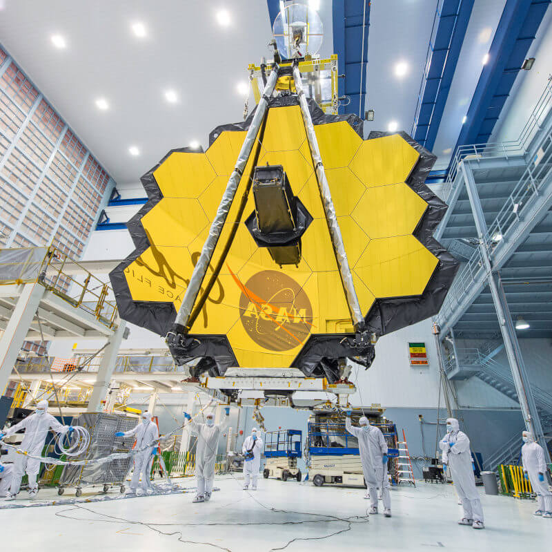 Das Teleskop besteht aus 18 Beryllium-Spiegeln-Segmenten, die mit einer dünnen Goldfolie überzogen sind. Insgesamt haben sie einen Durchmesser von 6,5 Metern, bzw. sind 25 m² groß. Damit sind die Spiegel zusammen fast dreimal so groß wie die vom Hubble-Teleskop. Das Beryllium ist besonders geeignet, da es den kalten Temperaturen im Weltraum standhalten kann. Das Gold reflektiert die Infrarotstrahlen.