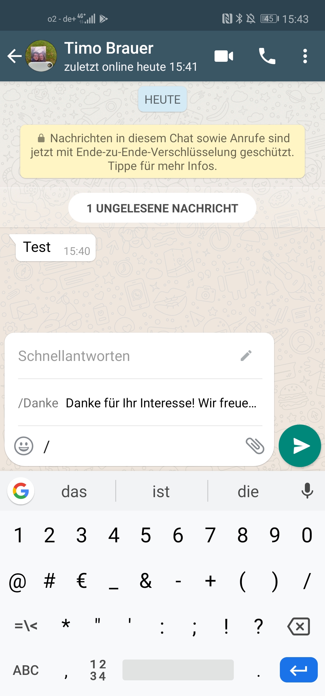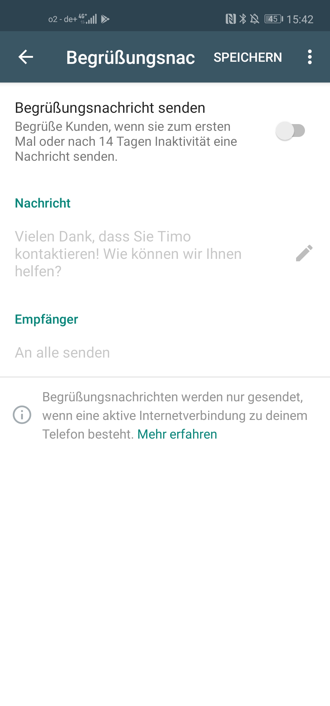 In WhatsApp Business könnt ihr einen Kurzlink erstellen, mit dem Kunden (oder auch jeder andere, der euch kontaktieren möchte) einen Link anklicken und einen Chat mit euch starten kann. Dafür muss er oder sie nicht extra eure Nummer abspeichern. Außerdem lassen sich Abwesenheits-Nachrichten und Begrüßungs-Nachrichten festlegen. Diese werden automatisch verschickt, nachdem euch jemand kontaktiert hat. Mit der Funktion Schnellantworten lassen sich außerdem Kurzbefehle erstellen, hinter denen sich Standardnachrichten verbergen, die ihr regelmäßig verschickt. Ferner könnt ihr anhand der sogenannten „Labels“ Chats markieren. Dadurch fällt es euch leichter, einen Überblick über unterschiedliche Gesprächsverläufe zu behalten. Diese Funktion ist derzeit jedoch nur unter Android nutzbar.