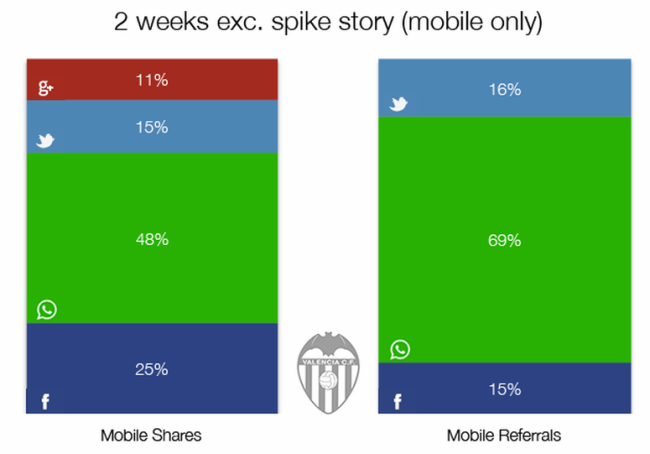 Verrückt, oder? Von all den Teilen-Buttons in der Mobilversion macht WhatsApp mehr als zwei Drittel der Besuche beim FC Valencia aus.