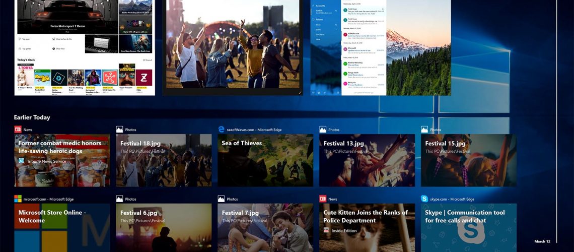 Die neue Timeline-Funktion zeigt Aktivitäten, die Nutzer in Microsoft-Software vorgenommen haben, in chronologischer Reihenfolge bis zu 30 Tage rückwirkend an. So können Nutzer sich vor Tagen oder Wochen geöffnete Webseiten, Anwendungen oder Dokumente im zuletzt genutzten Zustand ohne längere Suche wieder aufrufen. Dabei funktioniert Timeline über die Grenzen verschiedener Betriebssysteme hinweg. Daher werden Aktivitäten in Microsoft-Programmen auch auf iOS- sowie Android-Devices angezeigt. Allerdings setzt dies voraus, dass Nutzer mit ihrem Microsoft-Account angemeldet sind.