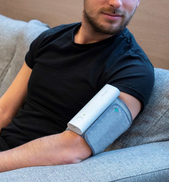 Beim Withings BPM Core handelt es sich um ein 3-in-1-Blutdruckmessgerät, das in 90 Sekunden drei verschiedene Messungen bzw. Aufzeichnungen vornehmen kann. Das umfasst erstens den systolischen und diastolischen Blutdruck, zweitens ein Elektrokardiogramm (EKG), das Vorhofflimmern identifiziert, und drittens ein digitales Stethoskop, das Herzklappenerkrankungen erkennt. Dies alles steckt in einer Armmanschette, die 430 Gramm wiegt und sich am Arm selbst aufbläst.