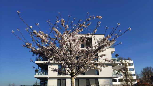 Auf der Rückseite verbaut der chinesische Hersteller zwei 12-Megapixel-Sensoren, einen von Sony und einen von Samsung. Tagsüber habe ich gar nichts an der tollen Bildqualität auszusetzen. Wird es schummerig, verrechnet die Kamera-Software Bildinformationen beider Sensoren in einer Datei. Dadurch sind mit dem Xiaomi Mi Mix 3 im Test auch in schwierigen Lichtbedingungen noch scharfe und detailreiche Aufnahmen möglich. Lediglich bei Nachtaufnahmen kann das Smartphone nicht mit den entsprechenden Nacht-Modi von Mitbewerbern wie Huawei oder Honor mithalten.